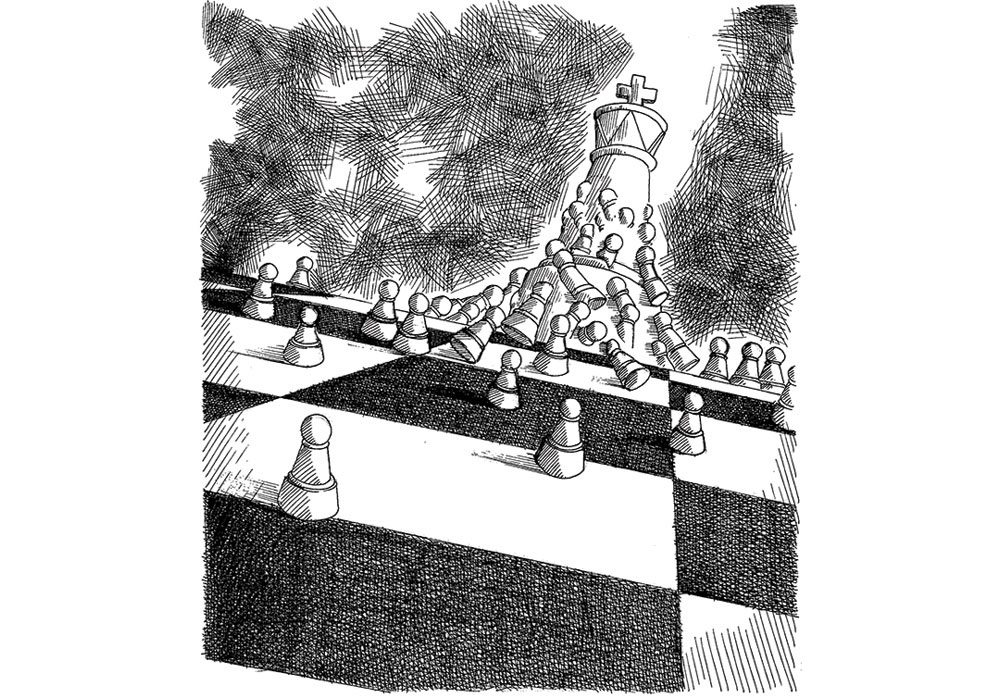 In the Chess project, I have used the chess pieces to attempt to explain my society. I used the stereotype of king, soldier, and castle to explain the power cartels. In this series, the audience sees a number of objects, which carry the same meaning in the global community. These objects show the classes of society and the hunger for power between ordinary people and the dominant forces. In this series, I have tried to show the situation as a reporter or witness rather than offering a solution to the problem. In the Chess series, all objects are gray hence the audience cannot distinguish between good (white) and evil (black).